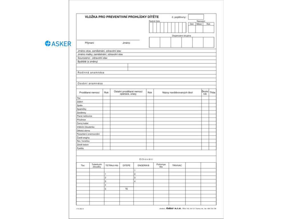 vložka pro preventivní prohlídku dítěte 1143520